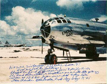 minute after my release at 08:16 Hrs. Japan surrendered 9 days later. / Tom Ferebee - Bombardier.