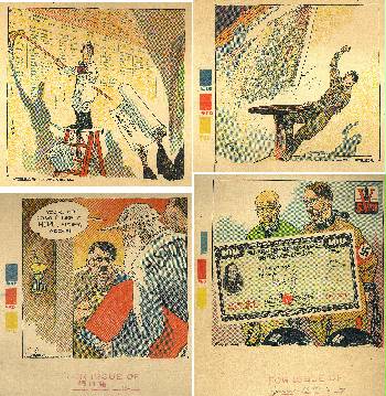 Proofsheets of Political Cartoons of Hitler. Four large color proofs of single-panel political
