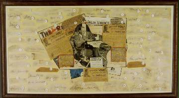signatures has been framed with a collage made of cut newspaper columns on handwriting revelation,